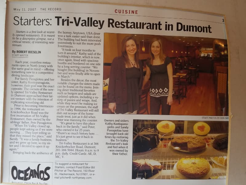 For Sandy Panagiotou and her sister, Kathy Kontopanagiotis, however, their goal was the exact opposite. The owners of the newly opened Tri-Valley Restaurant in Dumont approached their latest venture with the intention of replicating something old.